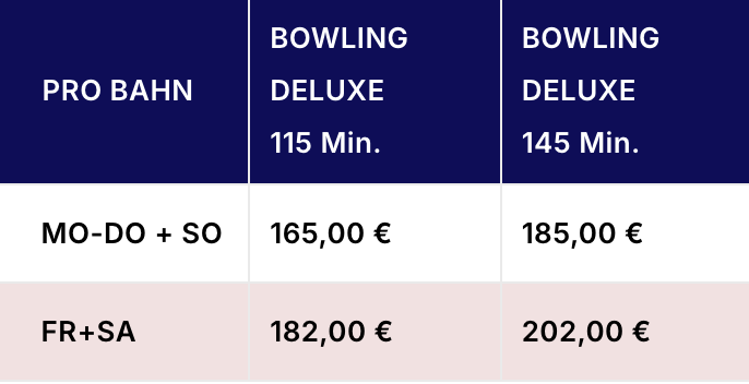 Gültig: ab 115 Min. Buchung 1-6 Bahnen.